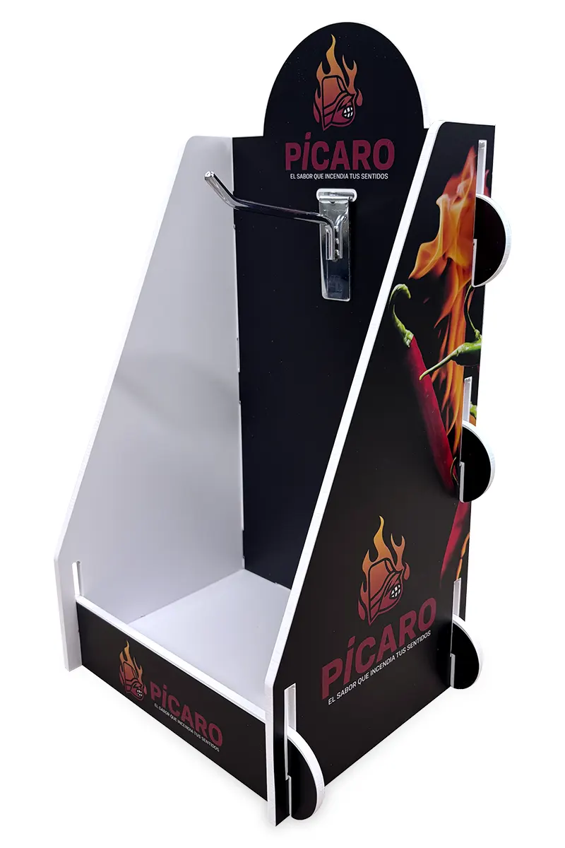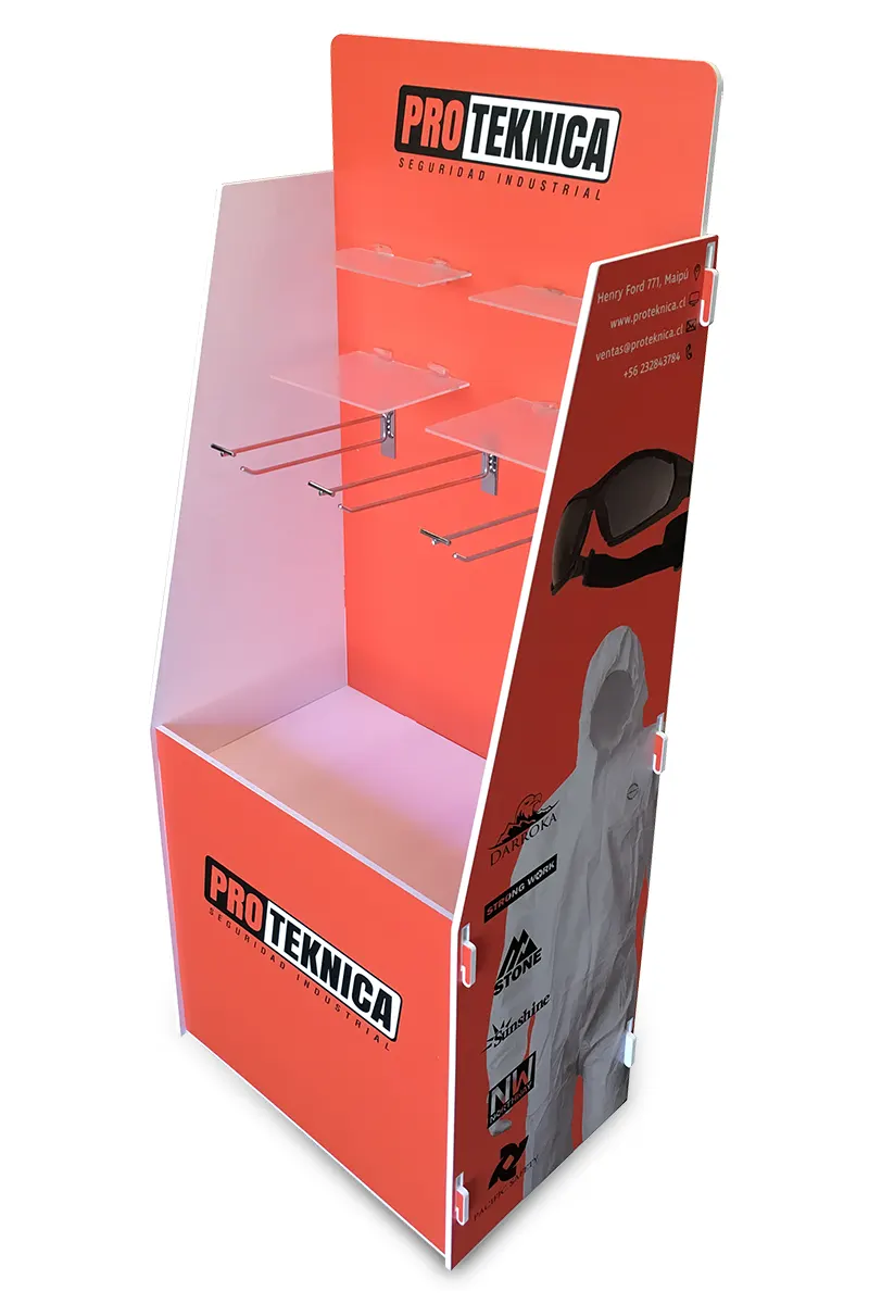 Exhibidores de productos fabricados por nosotros. Soluciones de exhibición en variedad de materiales y usos.
