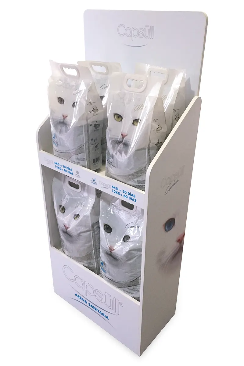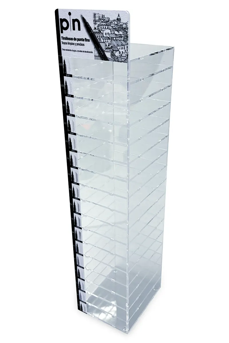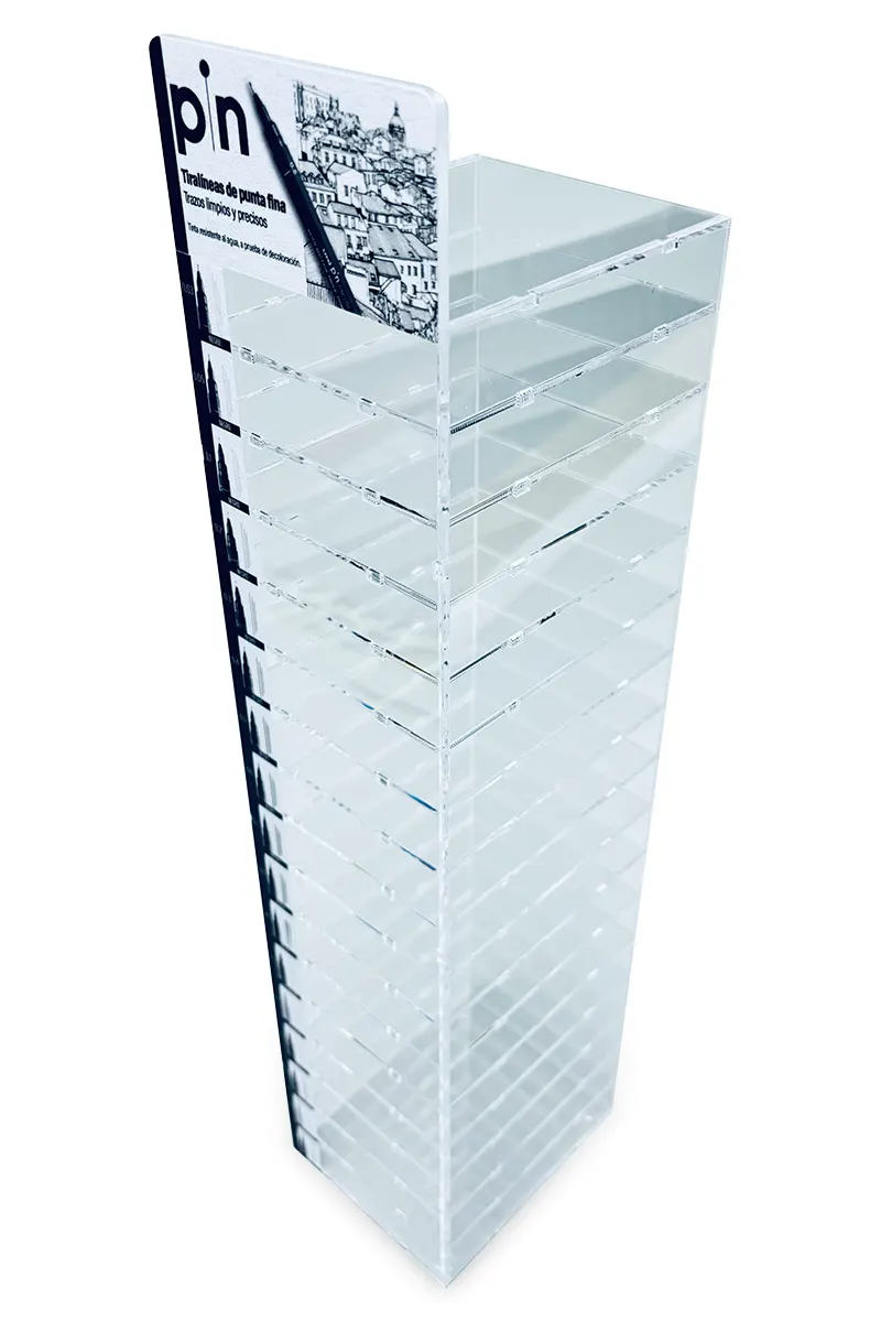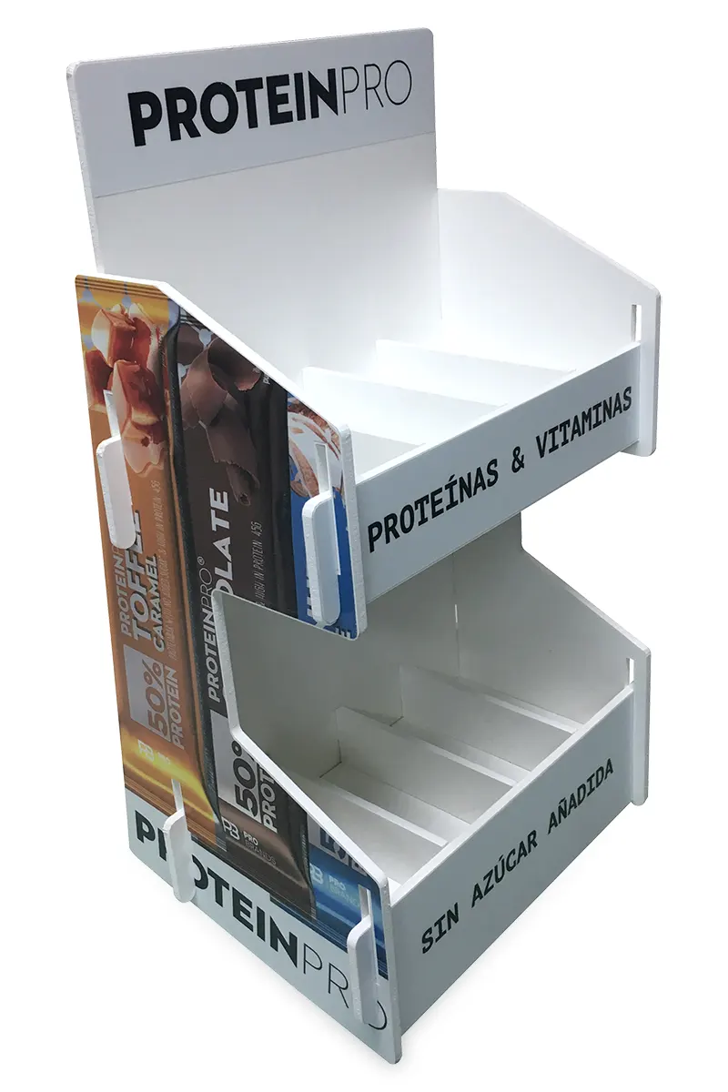 Exhibidores de productos desarrollados y fabricados por nosotros. Soluciones de exhibición a medida en variedad de materiales y usos.